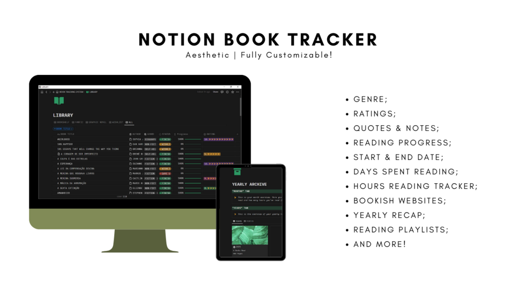 Want to update your Notion reading template? With this customizable Book Tracker you can easily plan and organize your past, present and future reads all at once!